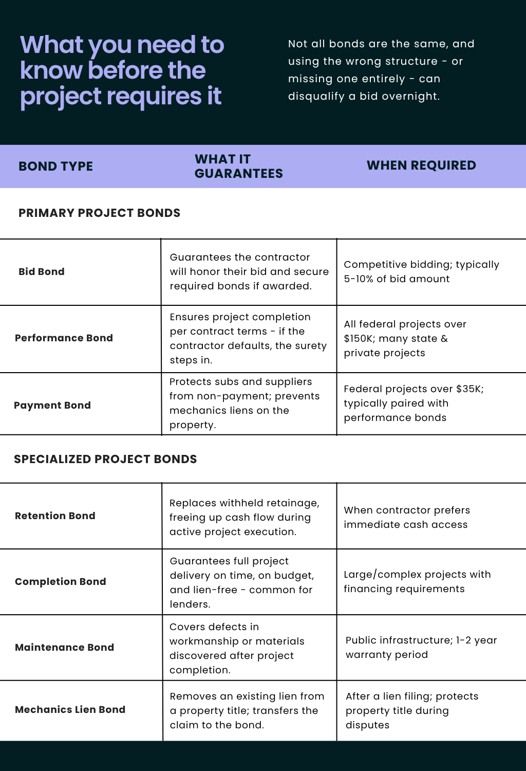 • Bonds aren’t just a lender checkbox - they pre-qualify your GC and protect your timeline.
