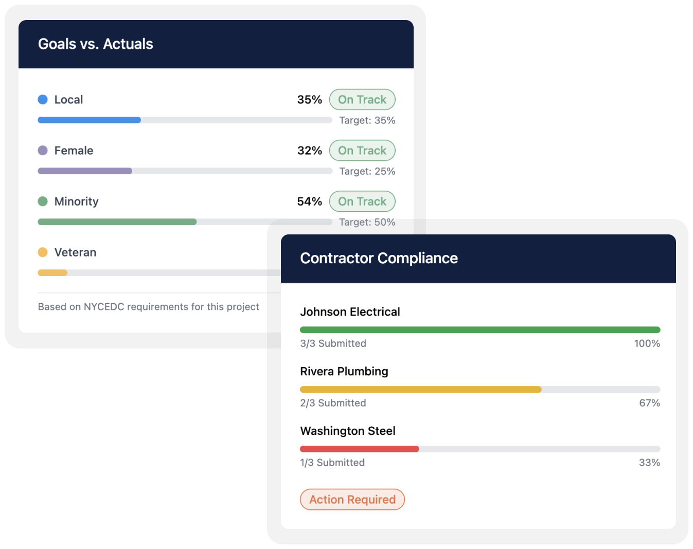Fully formatted participation and compliance reports ready for owner or agency submission — without manual spreadsheets or rework.